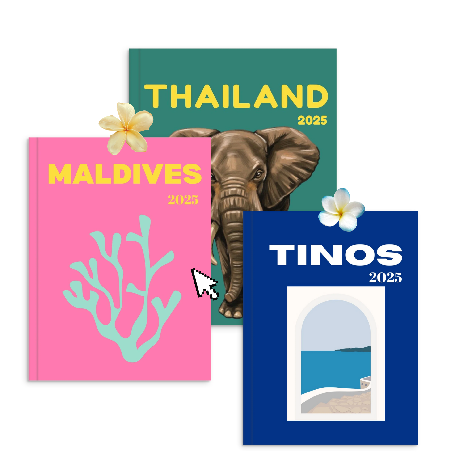 Pick your format ( 30, 40, or 50 pages ) and select a destination-themed layout or go fully custom.